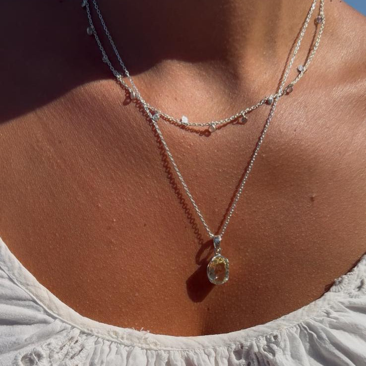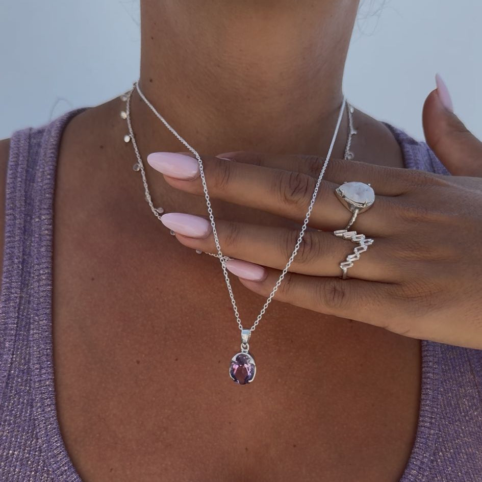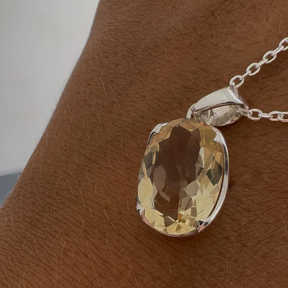 Diese wunderschönen Ketten aus 925er Silber sind längenverstellbar bis auf 65cm. Der grosse Citrin-Anhänger ist 11x18mm groß. Der Amethystanhänger ist 14x20mm groß.