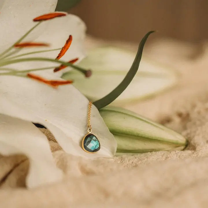 Wunderschöne Kette 18k vergoldet mit einem Labradoritanhänger.