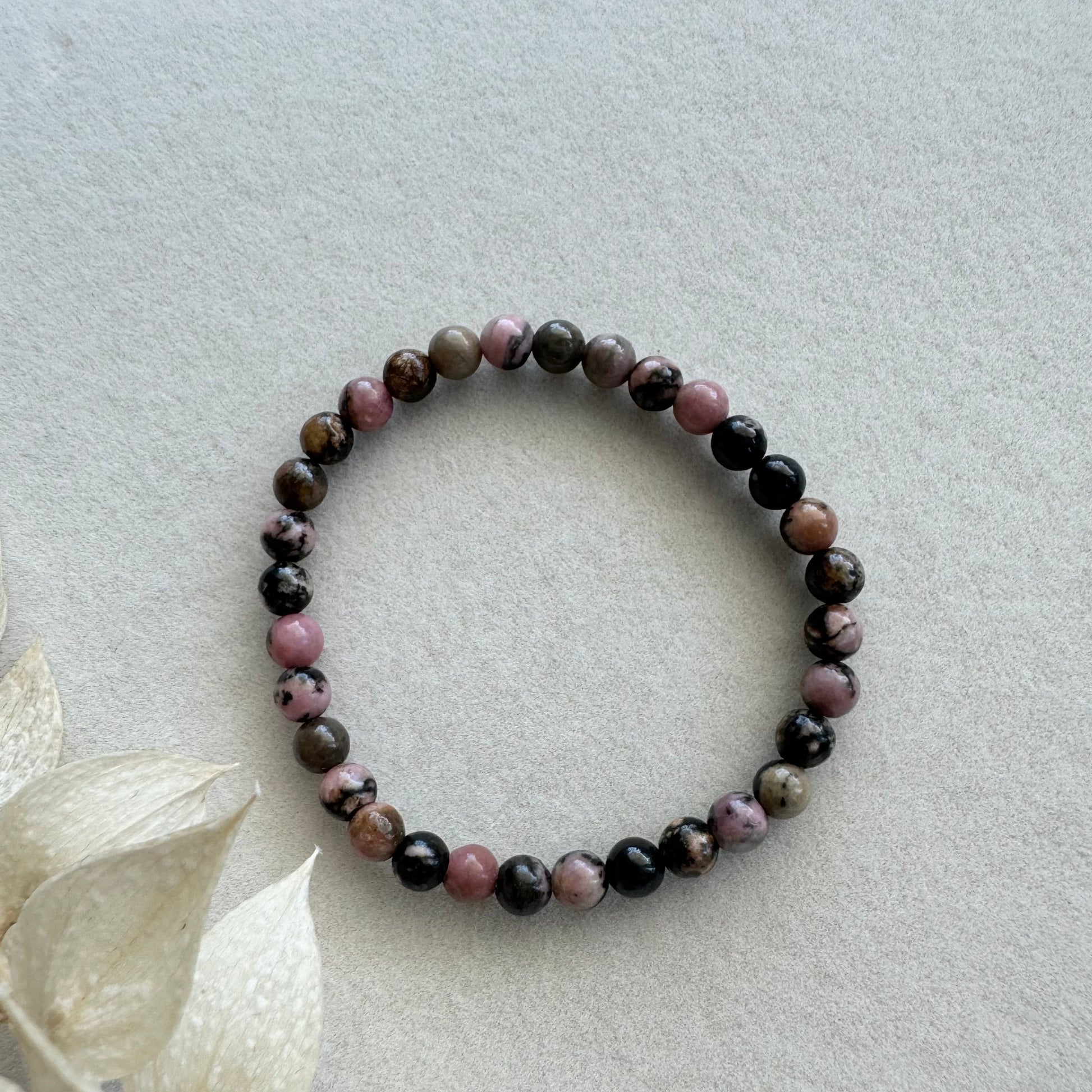 Wunderschönes Edelsteinarmband aus 4mm Rhodonit mit elastischem Gummizug.