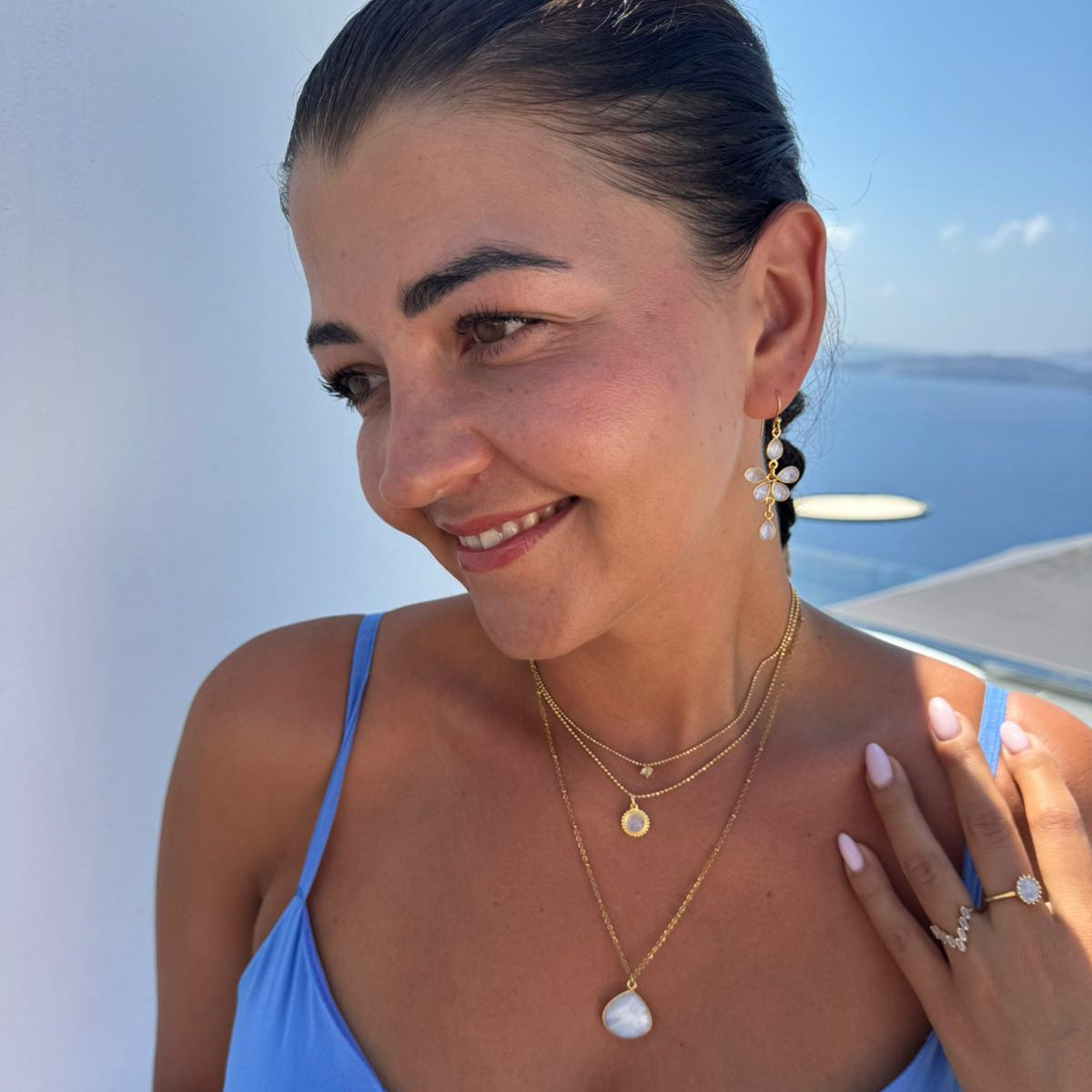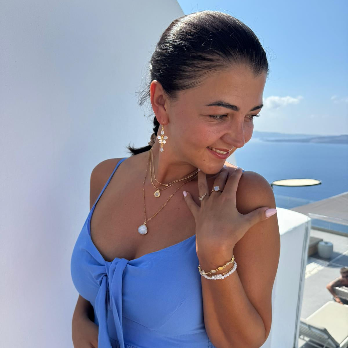 Der Schmuck ist vergoldet und sollte deshalb beim Duschen, Sport machen oder Eincremen abgezogen werden, damit die Vergoldung länger hält.