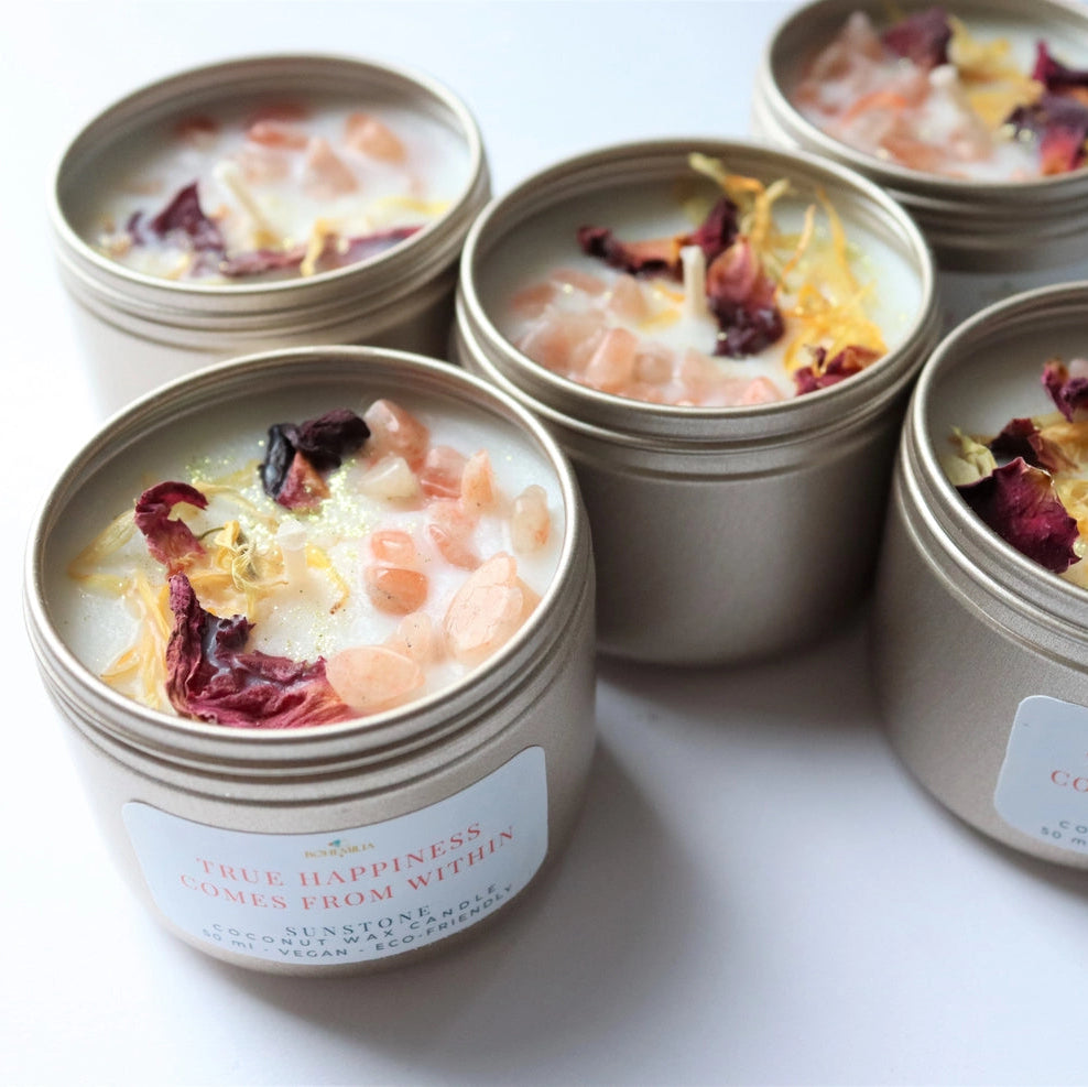 Wunderschönes Set bestehend aus zwei Kerzen mit Edelsteinen